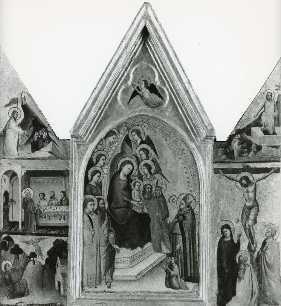 Madonna con Bambino in trono e Santi, discesa di Cristo al limbo, San Ludovico di Tolosa serve i poveri a mensa, San Francesco d'Assisi riceve le stimmate, resurrezione di Cristo, crocifissione di Cristo - dipinto