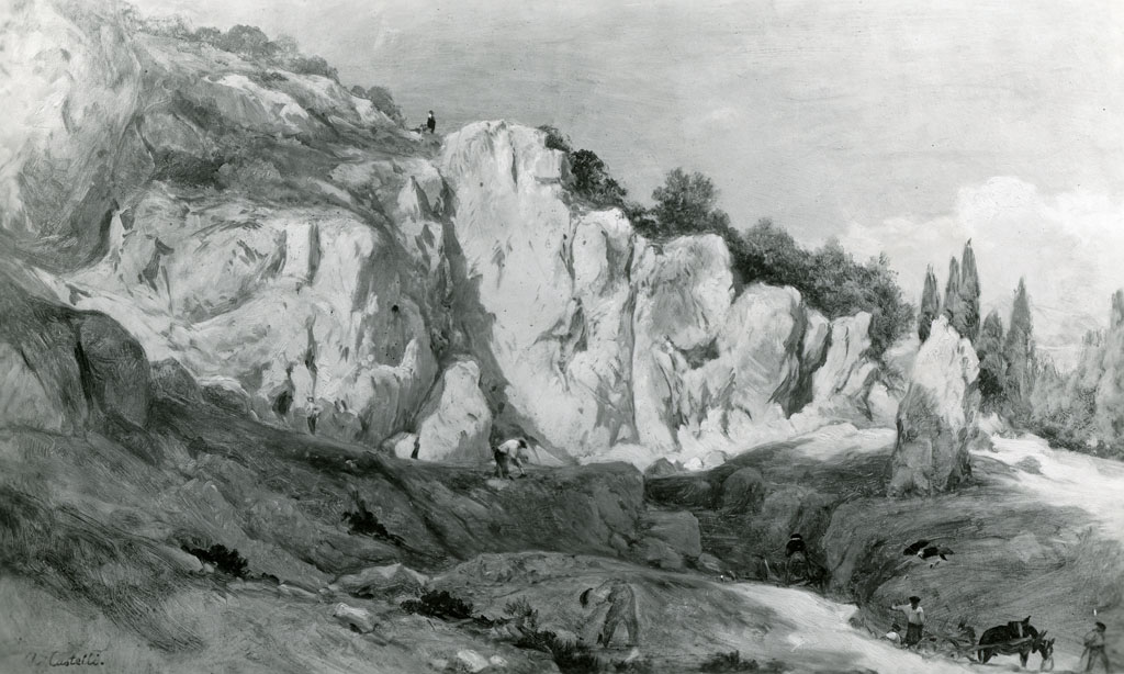 paesaggio roccioso con figure a lavoro - disegno - Roma - Museo Nazionale del Palazzo di Venezia