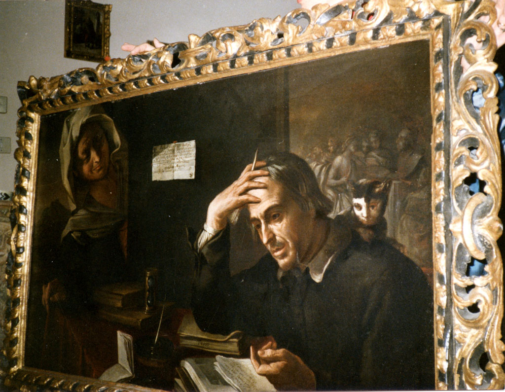 ritratto di Domenico Bartoli seduto allo scrittoio e figura femminile