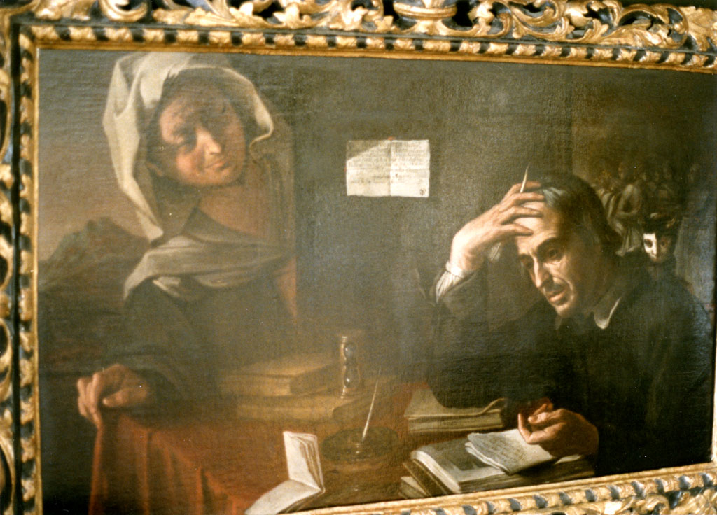 ritratto di Domenico Bartoli seduto allo scrittoio e figura femminile