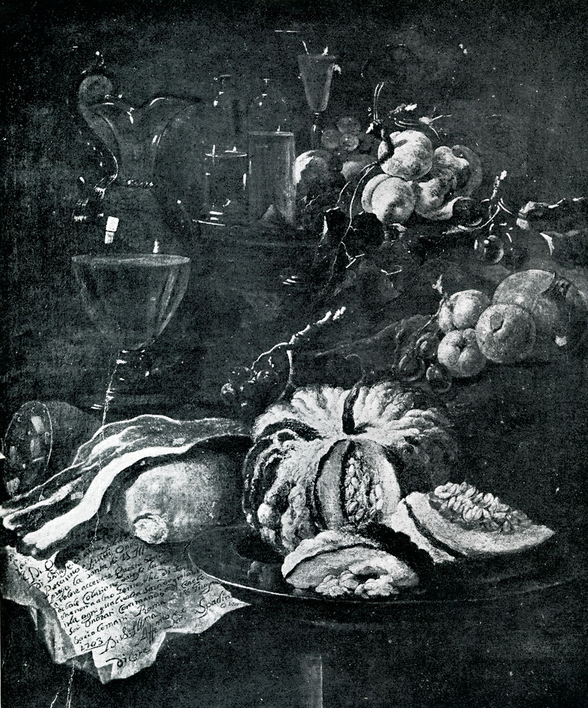 natura morta con frutta, pane, prosciutto, cristalli e lettera - 1703 [?] - dipinto - Roma - Musei Capitolini - Pinacoteca