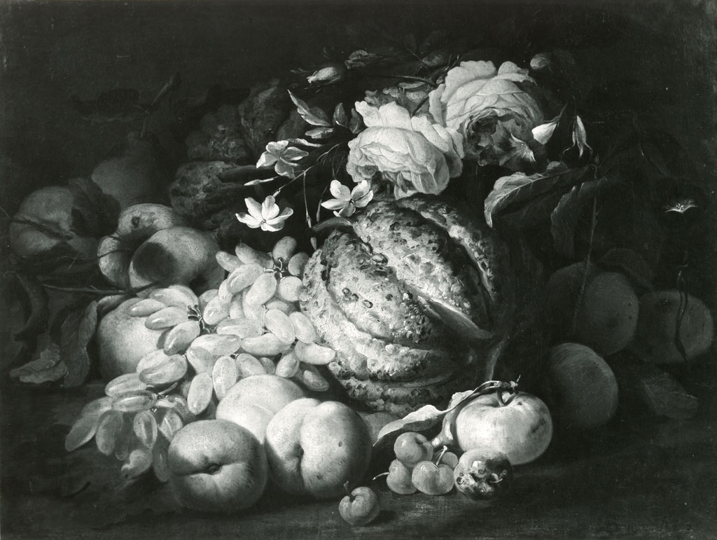 natura morta con frutta, rose, campanule e gelsomino - 1675 - dipinto