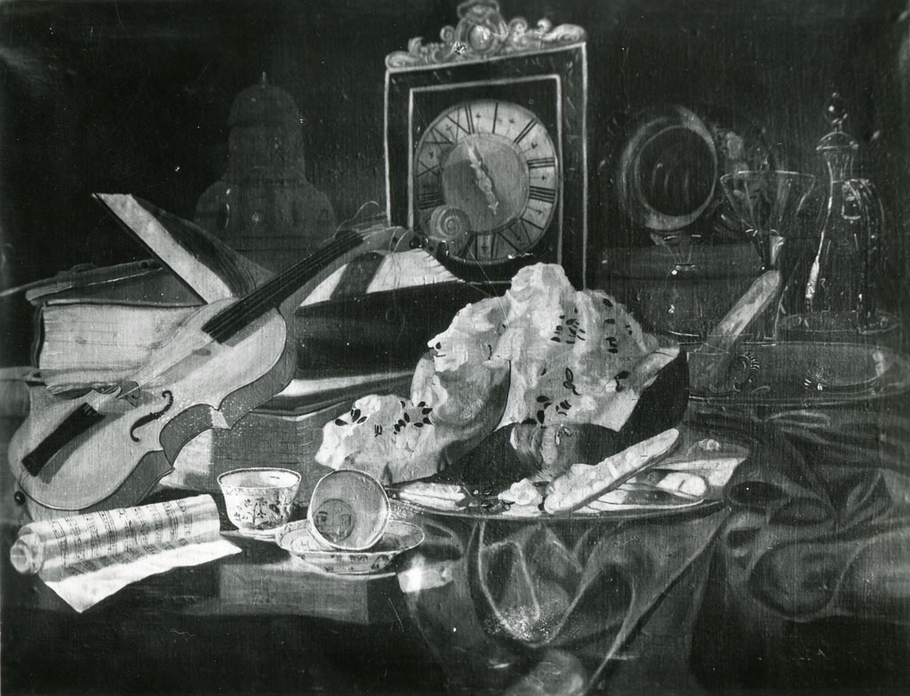 natura morta con frutta, violino, partitura e vasellame - dipinto - Firenze - Gli Uffizi