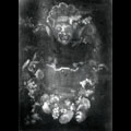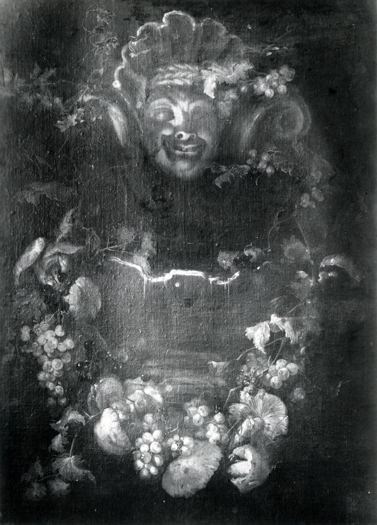 ghirlanda di frutta e funghi con mascherone - dipinto