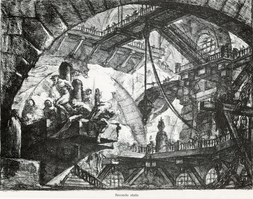 capriccio architettonico di una prigione con figure e una lampada - stampa
