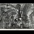capriccio architettonico di una prigione con pilastro con mascheroni