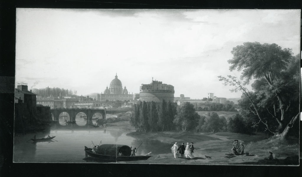 veduta del Tevere con Castel Sant'Angelo, la Basilica di San Pietro e figure