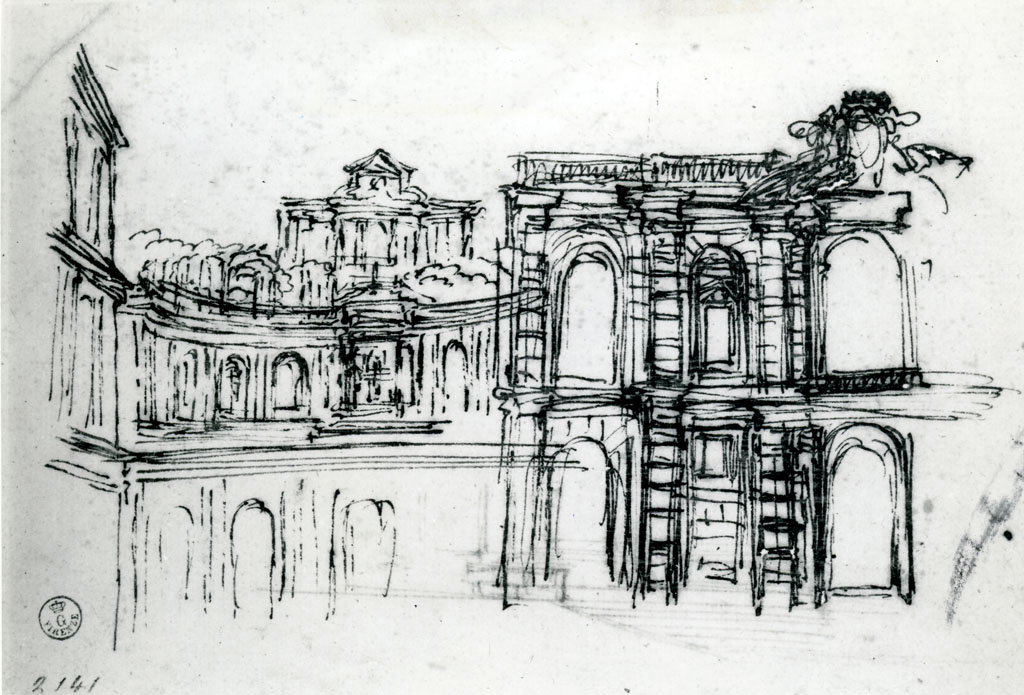 studio del prospetto dell'anfiteatro dei giardini di Boboli a Firenze - disegno - Firenze - Gli Uffizi - Gabinetto dei Disegni e delle Stampe