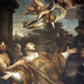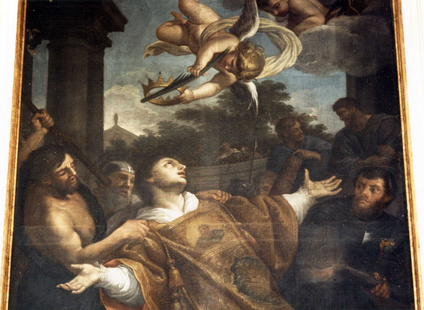 volto di San Lorenzo e angelo con corona e palma del martirio