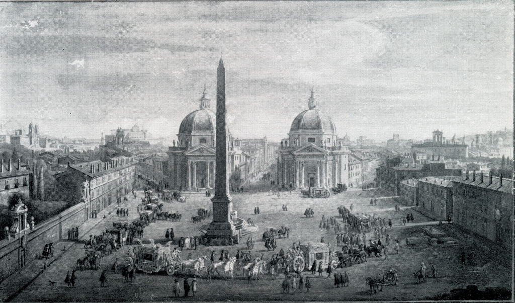 veduta di piazza del Popolo a Roma - 1680 - dipinto - Germania - Berlino - Staatliche Museen Preussicher Kulturbesitz - Kupferstichkabinett