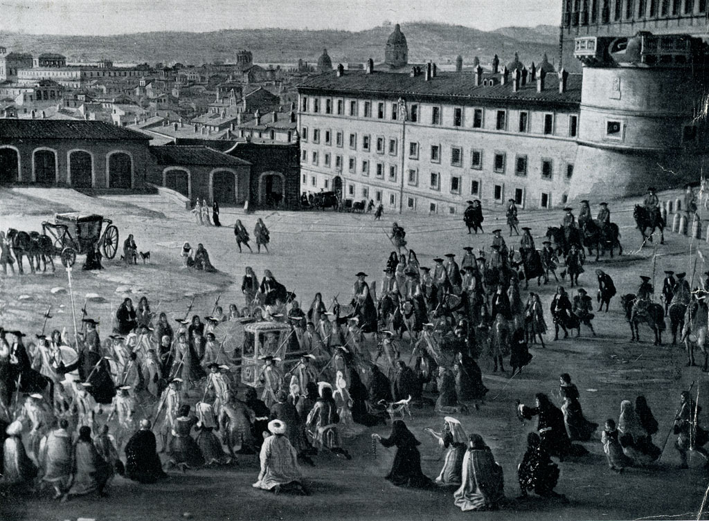 veduta della Piazza e del Palazzo di Montecavallo a Roma - particolare - 1693 - dipinto - Germania - Würzburg - Martin von Wagner Museum