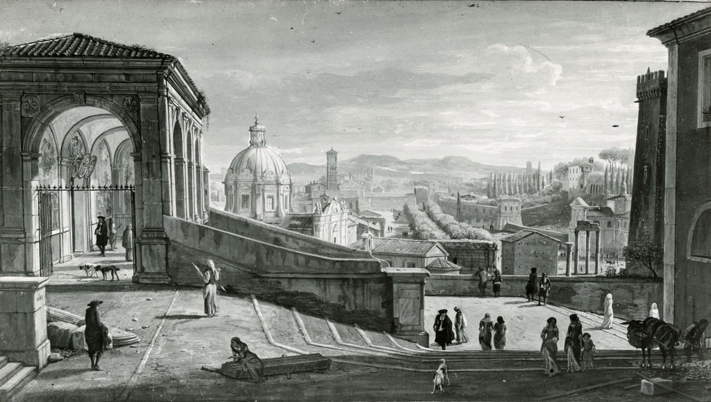 veduta del Campo Vaccino dalla scala laterale dell'Aracoeli a Roma - 1683 - dipinto - Roma - Palazzo Colonna - Galleria