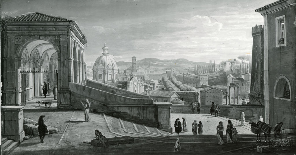 veduta del Campo Vaccino dalla scala laterale dell'Aracoeli a Roma - 1683 - dipinto - Roma - Palazzo Colonna - Galleria