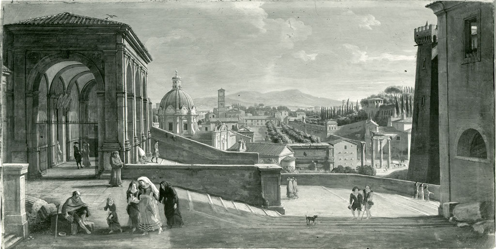 veduta del Campo Vaccino dalla scala laterale dell'Aracoeli a Roma - dipinto - Roma - Palazzo Pallavicini Rospigliosi - Galleria