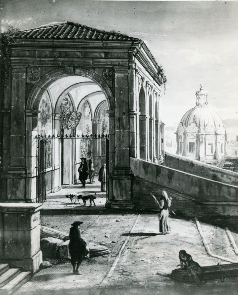 veduta del Campo Vaccino dalla scala laterale dell'Aracoeli a Roma - particolare - 1683 - dipinto - Roma - Palazzo Colonna - Galleria