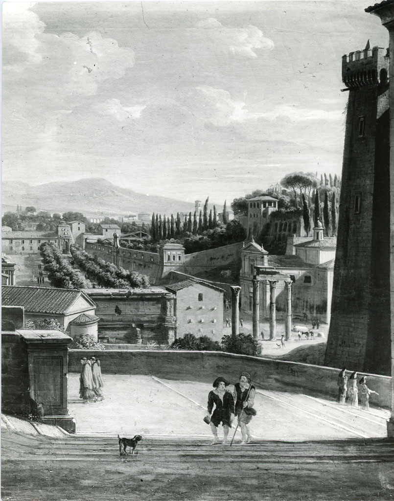 veduta del Campo Vaccino dalla scala laterale dell'Aracoeli a Roma - particolare - dipinto - Roma - Palazzo Pallavicini Rospigliosi - Galleria