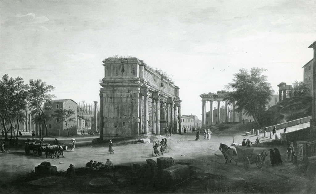 veduta dell'Arco di Settimio Severo e del Tempio di Saturno a Roma