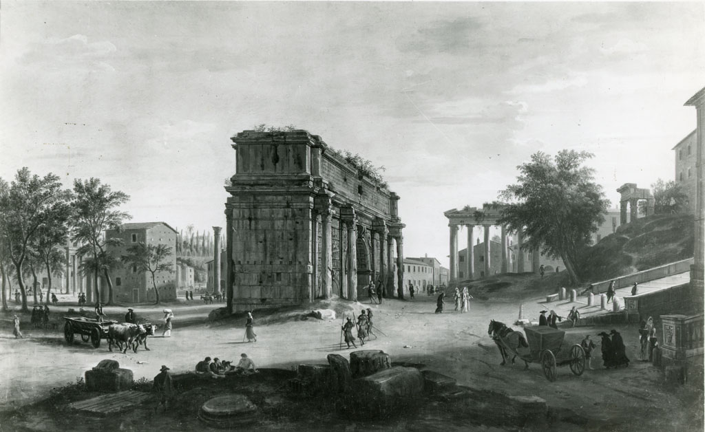 veduta dell'Arco di Settimio Severo e del Tempio di Saturno a Roma