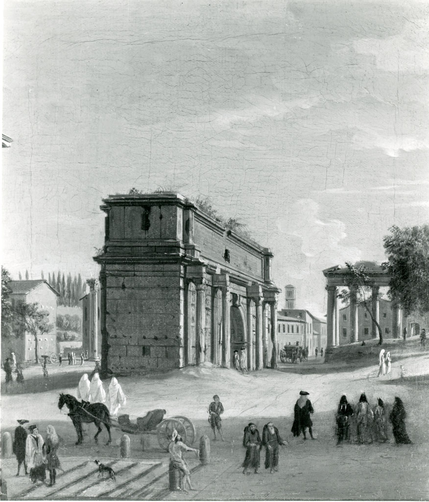 veduta dell'Arco di Settimio Severo e del Tempio di Saturno a Roma