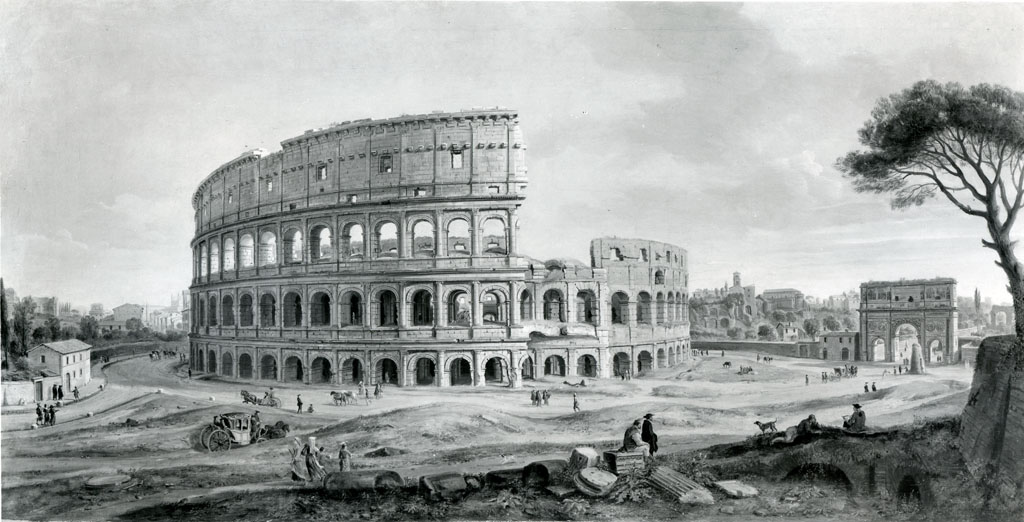 veduta del Colosseo e dell'Arco di Costantino a Roma - dipinto