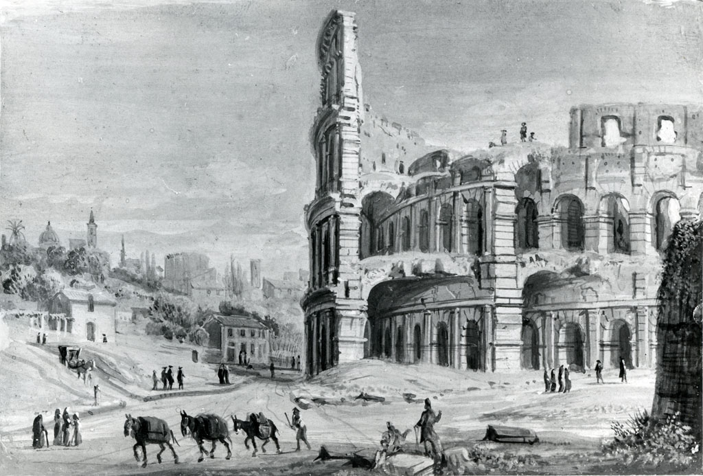 veduta del Colosseo dalla Meta Sudante a Roma - 1716 - dipinto
