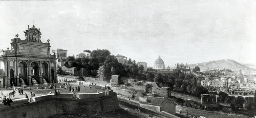 veduta della fontana dell'Acqua Paola a Roma - 1706 - dipinto
