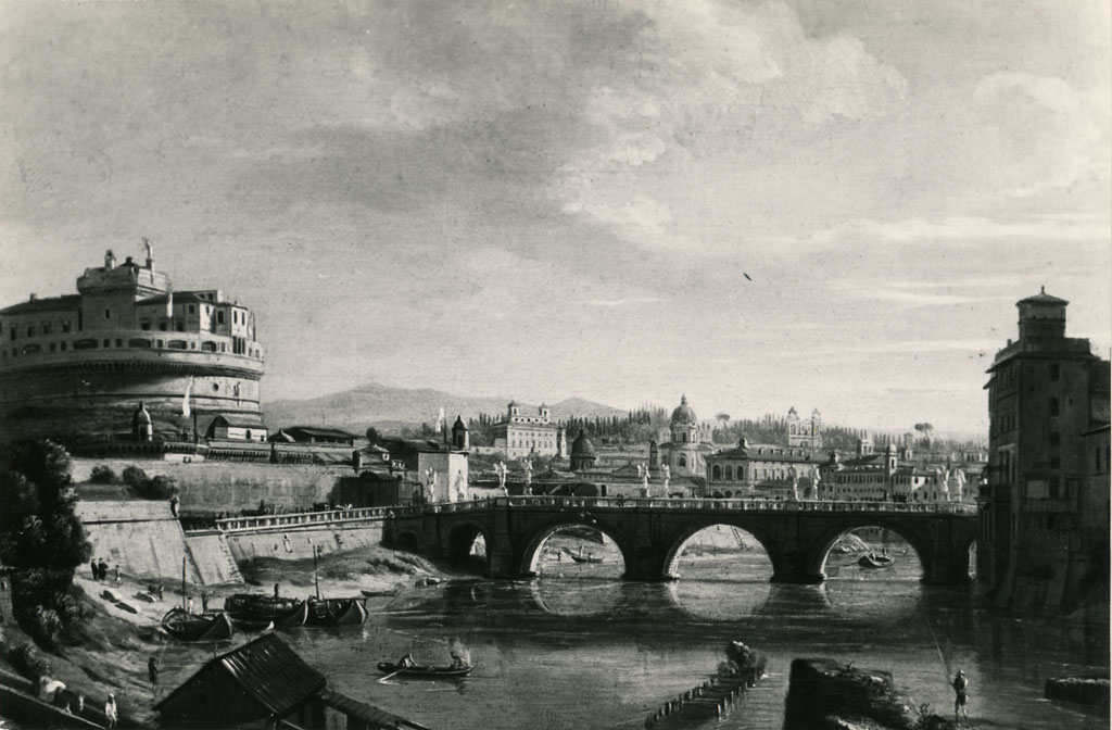 veduta del Tevere con il mulino galleggiante e Castel Sant'Angelo a Roma - particolare - 1706 - dipinto