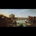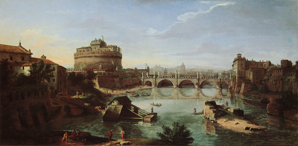 veduta del Tevere con il mulino galleggiante e Castel Sant'Angelo a Roma - dipinto - Roma - Dexia Crediop