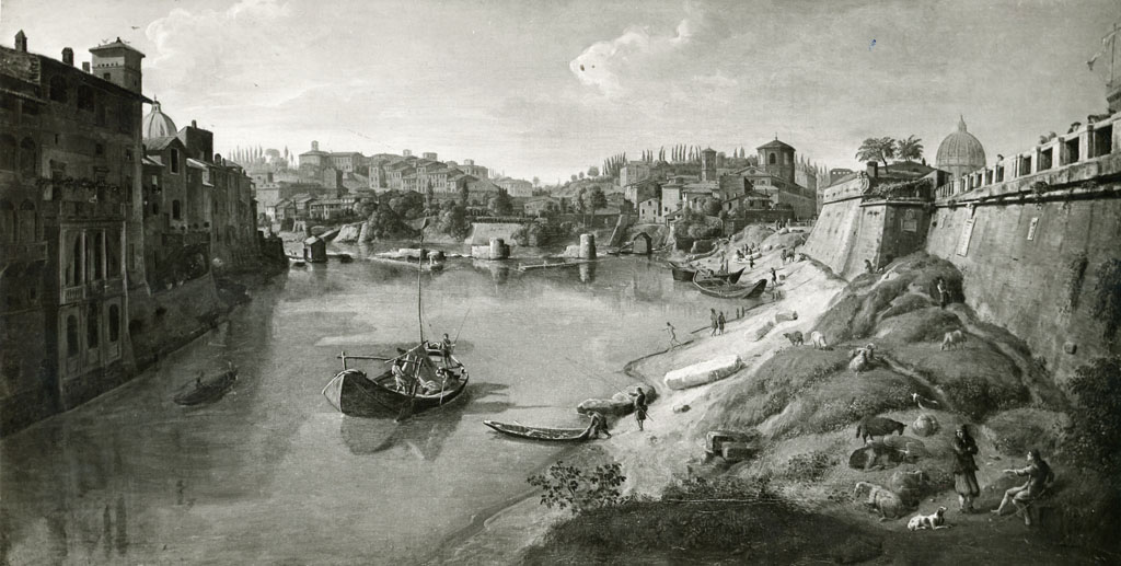 veduta del Tevere sotto i bastioni di Castel Sant'angelo a Roma - 1680 ca. - dipinto