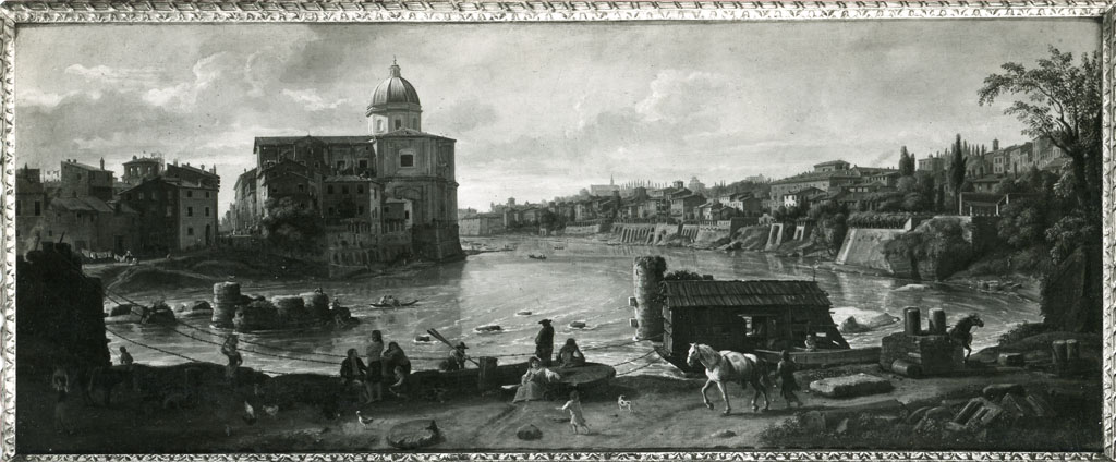veduta del Tevere con via Giulia e la chiesa di San Giovanni dei Fiorentini a Roma - 1690 ca. - dipinto