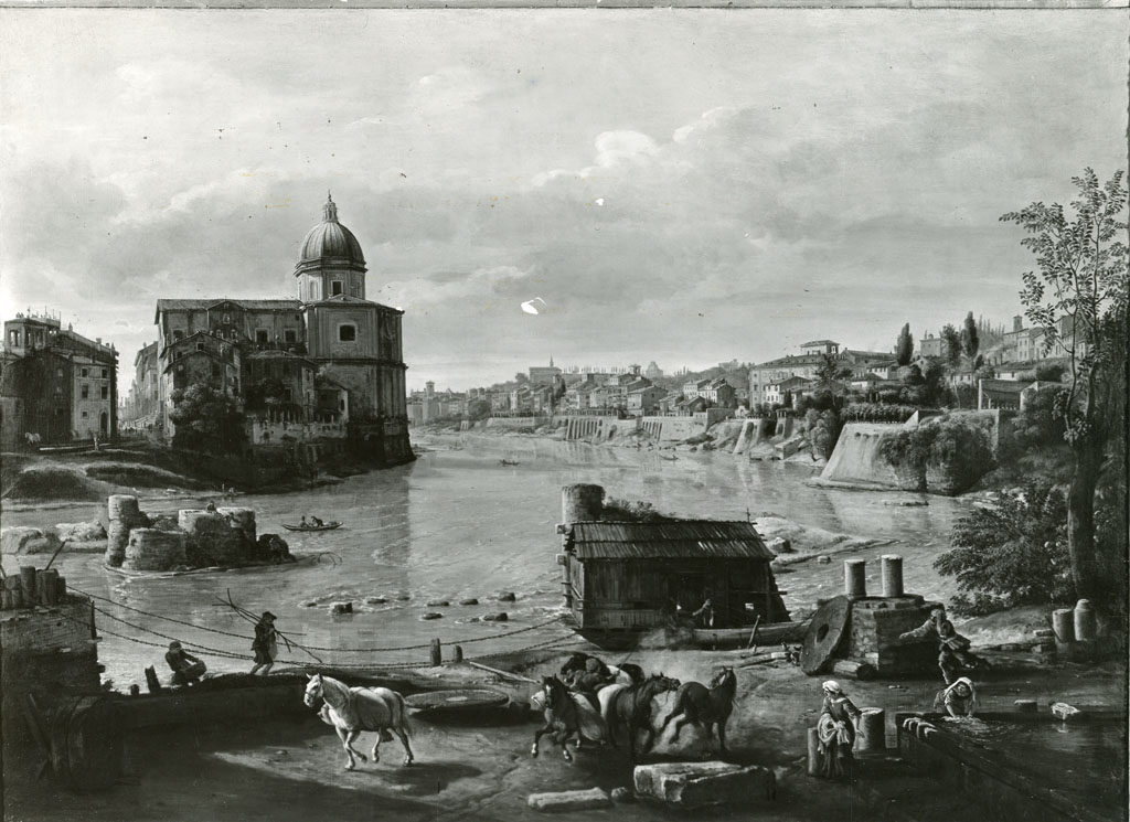 veduta del Tevere con via Giulia e la chiesa di San Giovanni dei Fiorentini a Roma - 1705 ca. - dipinto