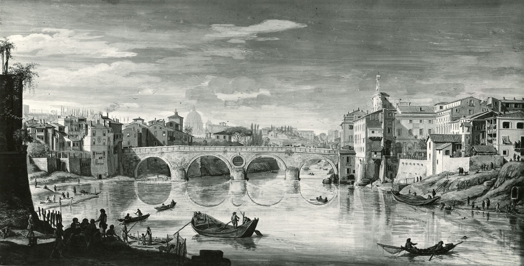 veduta del Tevere con ponte Sisto a Roma - 1684 ca. - dipinto
