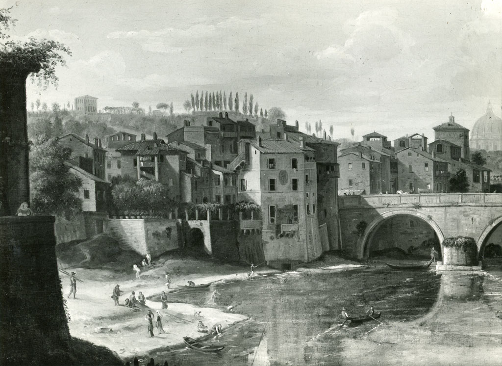 veduta del Tevere con ponte Sisto a Roma - particolare - dipinto