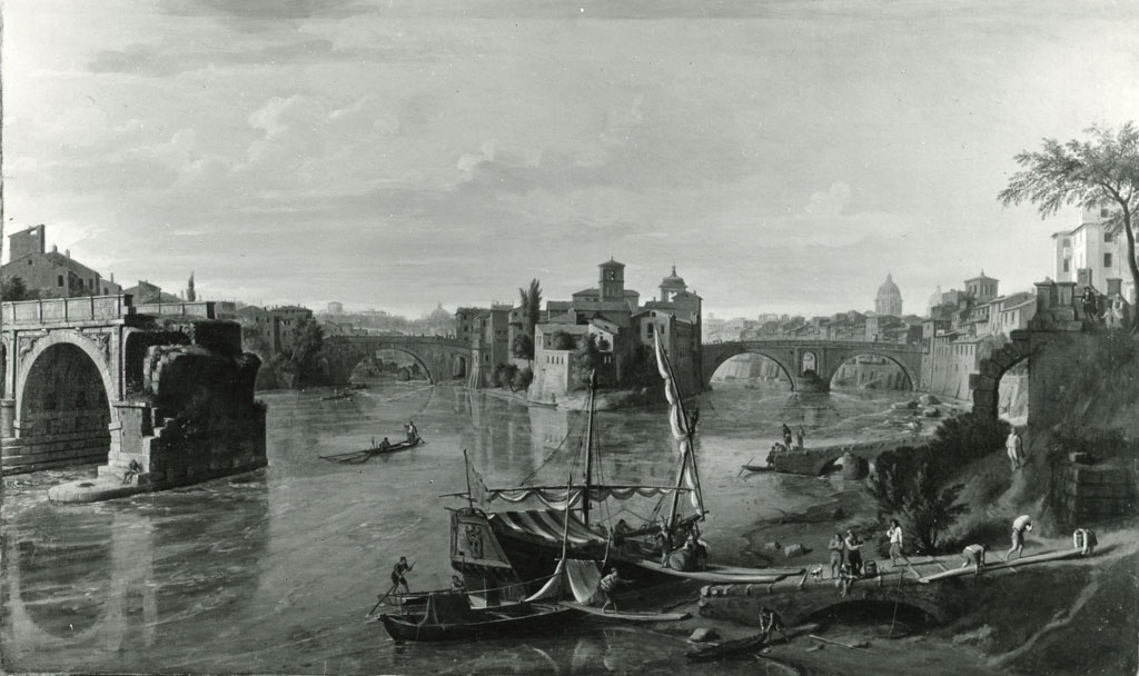 veduta del Tevere con l'isola Tiberina a Roma - 1691-1700 - dipinto - Germania - Stoccarda - Staatsgalerie Stuttgart