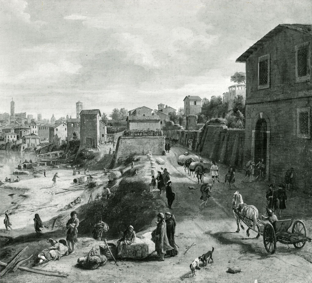 veduta del Tevere al porto di Ripa Grande a Roma - particolare - 1686 - dipinto