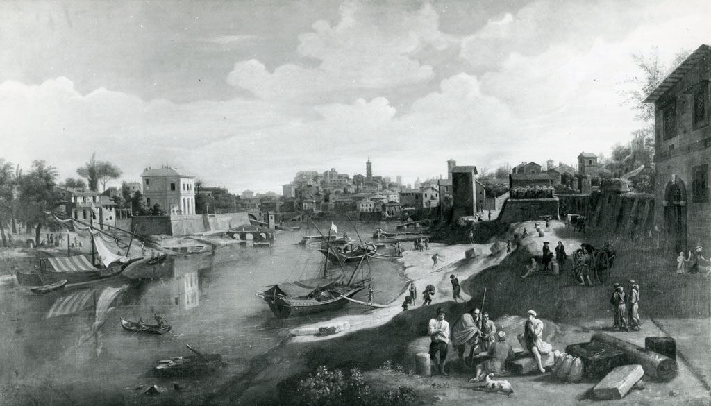 veduta del Tevere al porto di Ripa Grande a Roma - 1700-1710 - dipinto