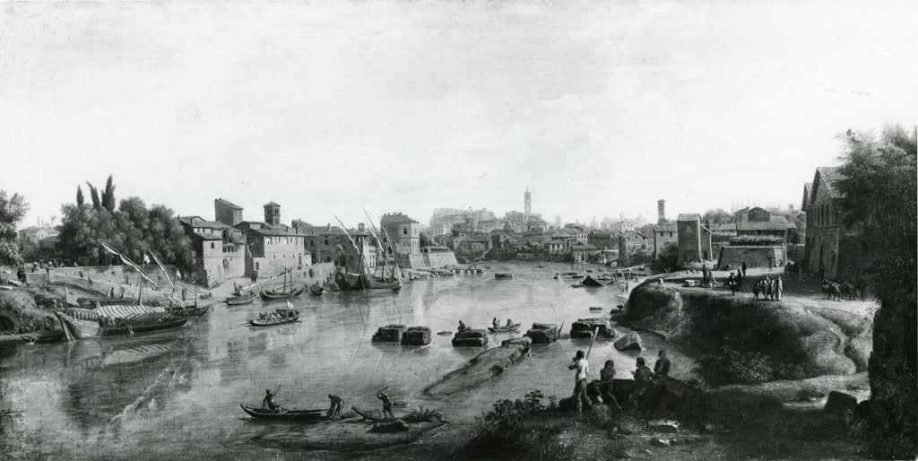 veduta del Tevere con il porto di Ripa Grande a Roma - 1711 - dipinto - Roma - Accademia di San Luca