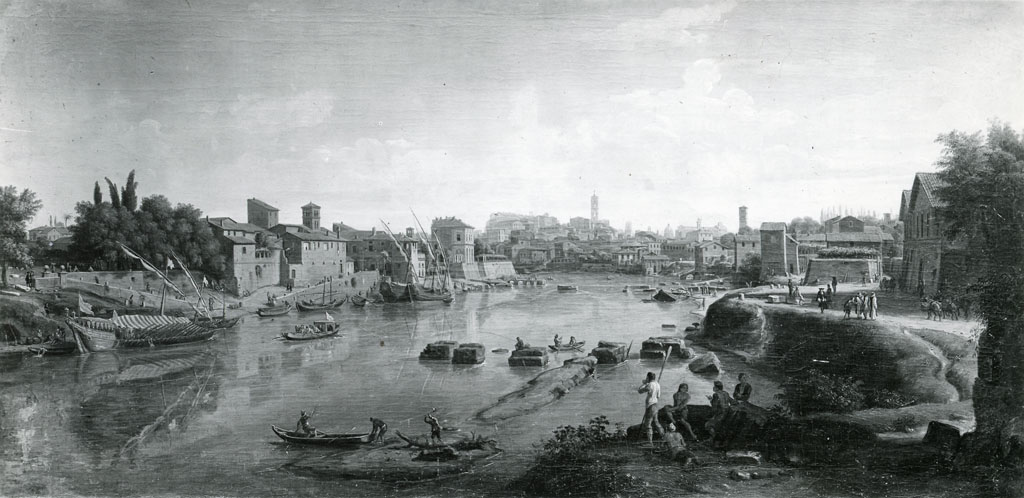 veduta del Tevere con il porto di Ripa Grande a Roma - 1711 - dipinto - Roma - Accademia di San Luca