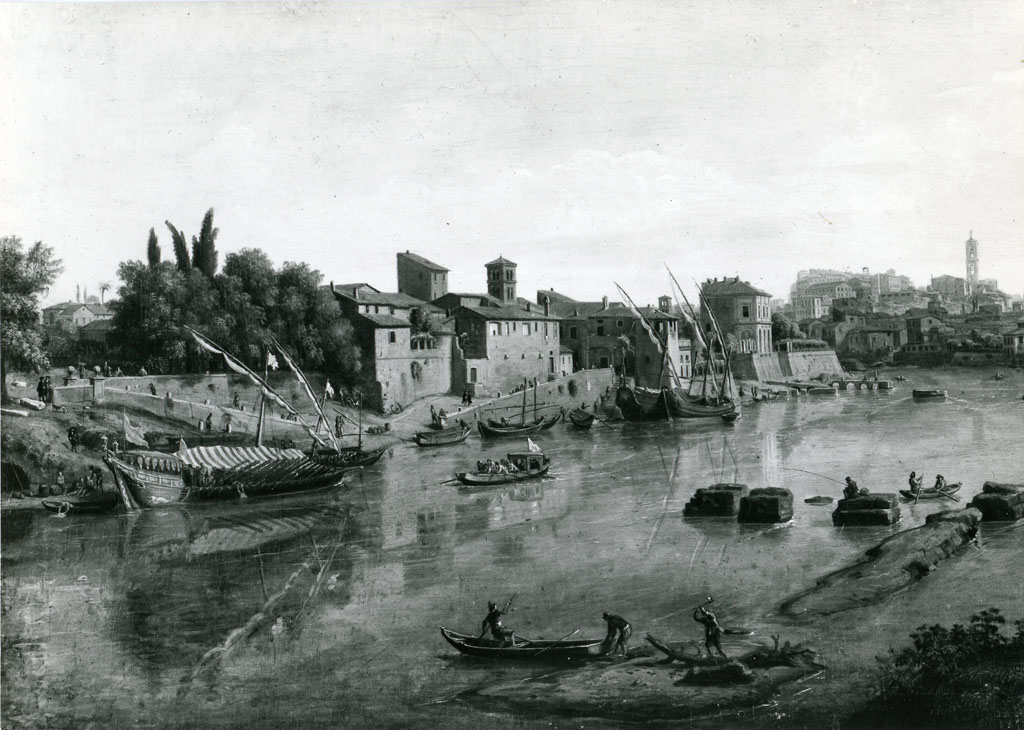 veduta del Tevere con il porto di Ripa Grande a Roma - particolare - 1711 - dipinto - Roma - Accademia di San Luca