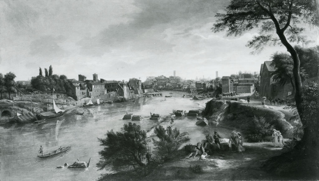 veduta del Tevere con il porto di Ripa Grande a Roma - dipinto