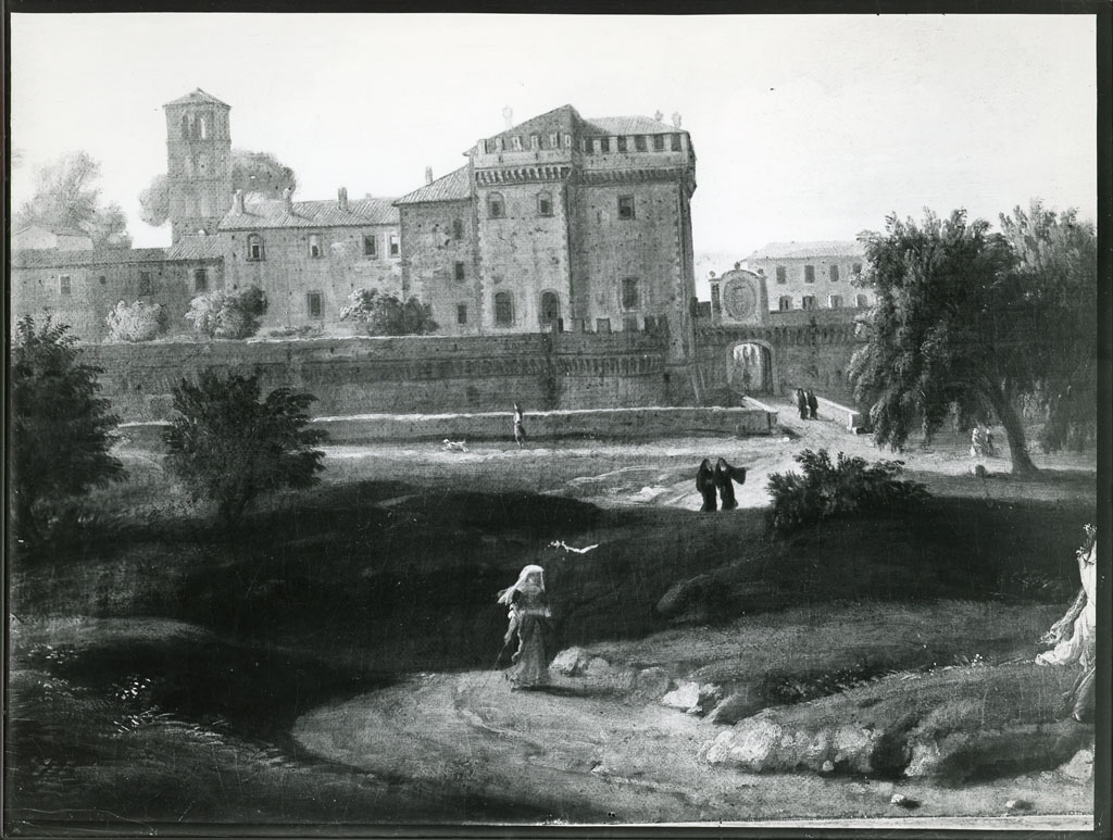 veduta del paesaggio con l'abbazia di San Nilo a Grottaferrata - particolare - 1700-1710 - dipinto - Roma - Palazzo Corsini - Galleria Nazionale d'Arte Antica