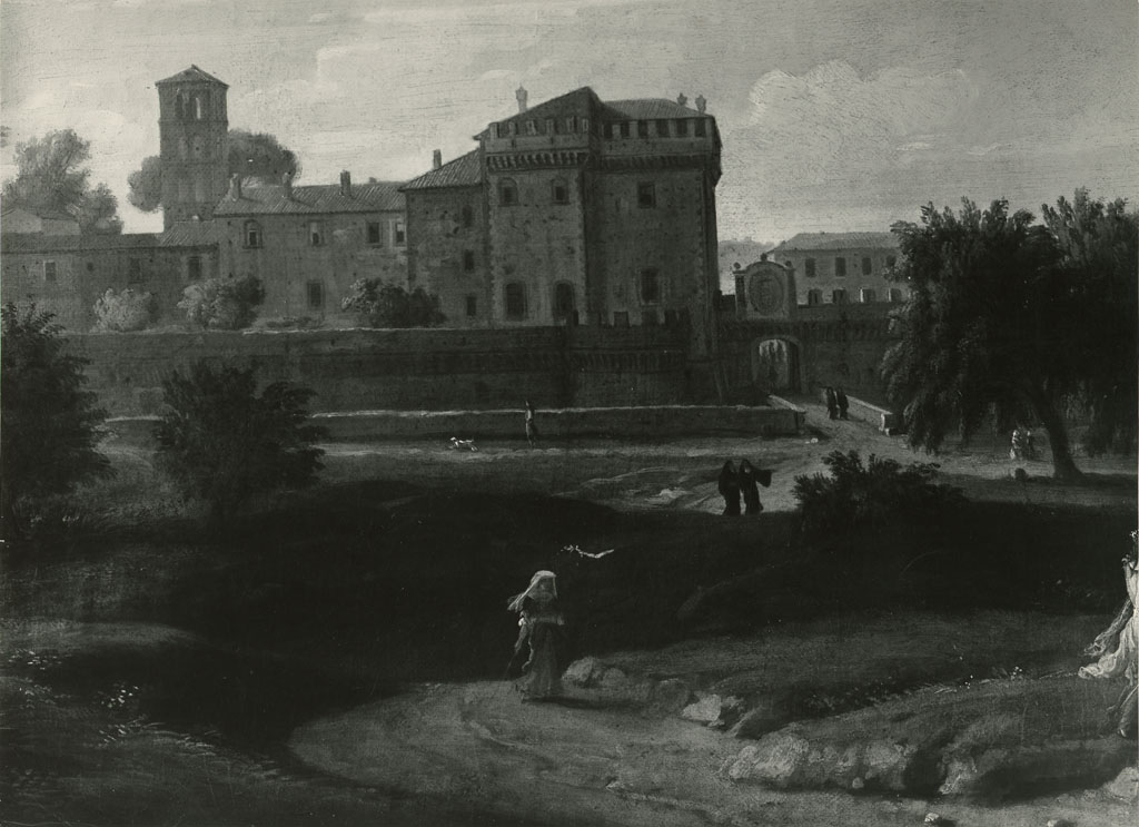 veduta del paesaggio con l'abbazia di San Nilo a Grottaferrata - particolare - 1700-1710 - dipinto - Roma - Palazzo Corsini - Galleria Nazionale d'Arte Antica