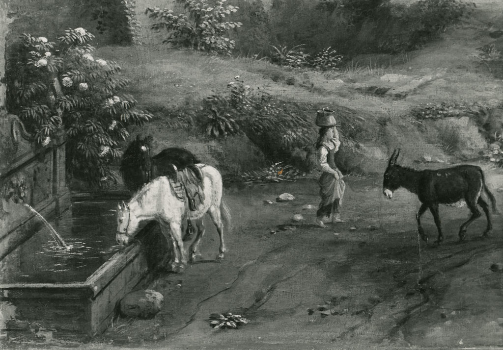 fontana, animali e figura femminile