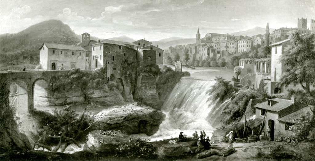 veduta di Tivoli con cascata dell'Aniene