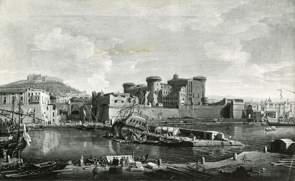 veduta della Darsena e Castel Nuovo a Napoli - dipinto