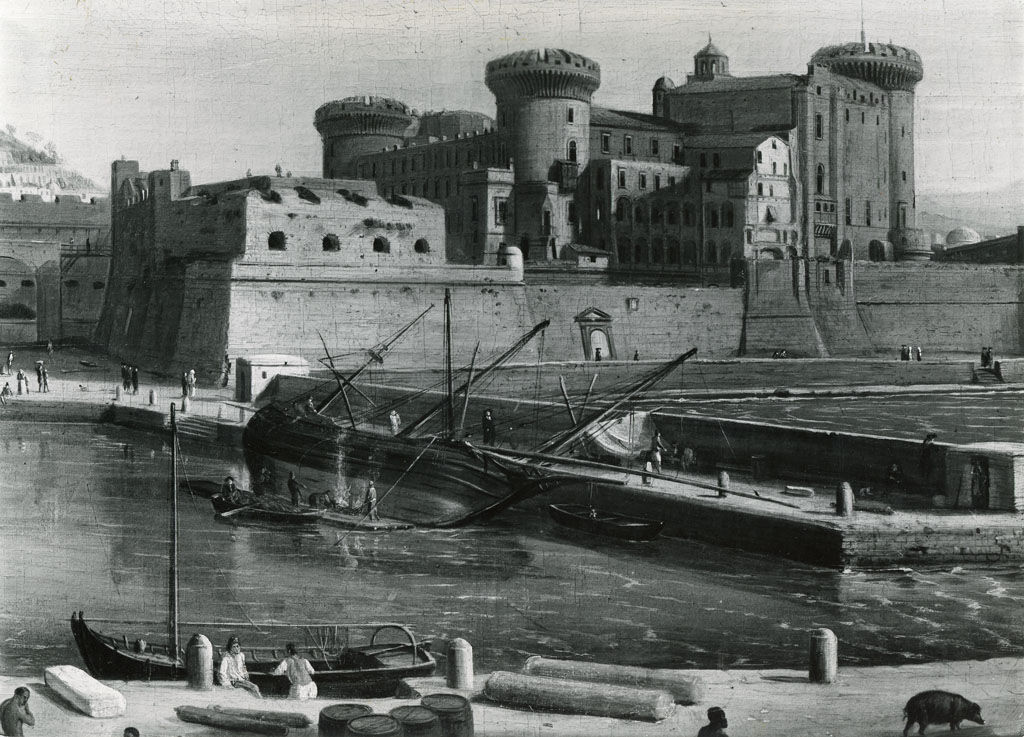 veduta della Darsena e Castel Nuovo a Napoli - particolare - 1708 - dipinto