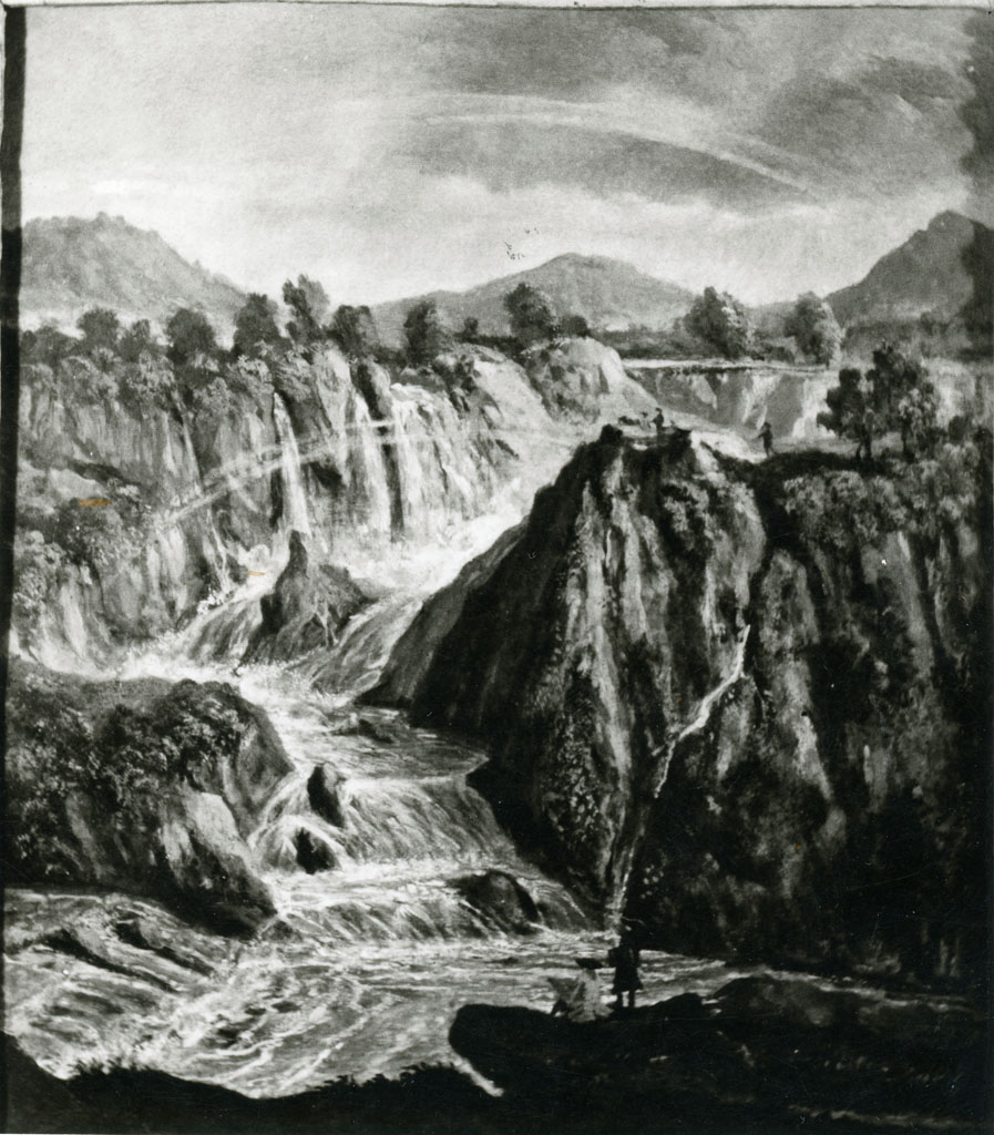 paesaggio con cascata - dipinto