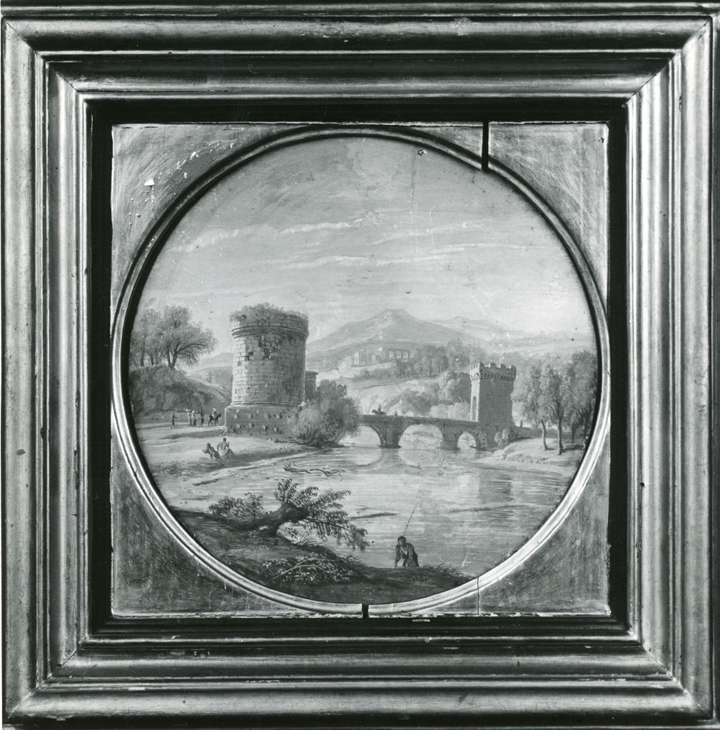 veduta di fantasia del ponte Lucano sul fiume Aniene - 1713 - dipinto