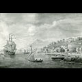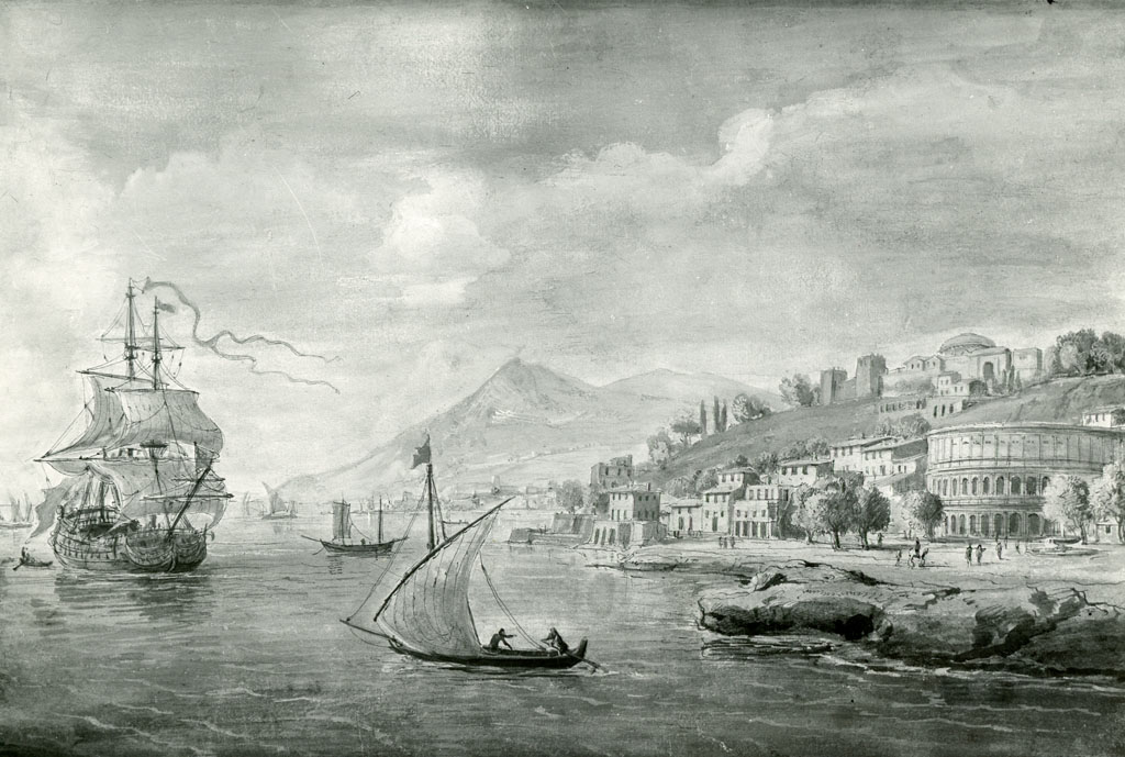 paesaggio marino di fantasia con il Colosseo - dipinto