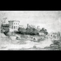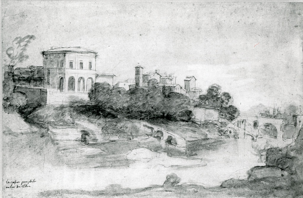 veduta del casino di Donna Olimpia, del giardino Pamphilj e della chiesa di Santa Maria in Cappella sul Tevere - disegno